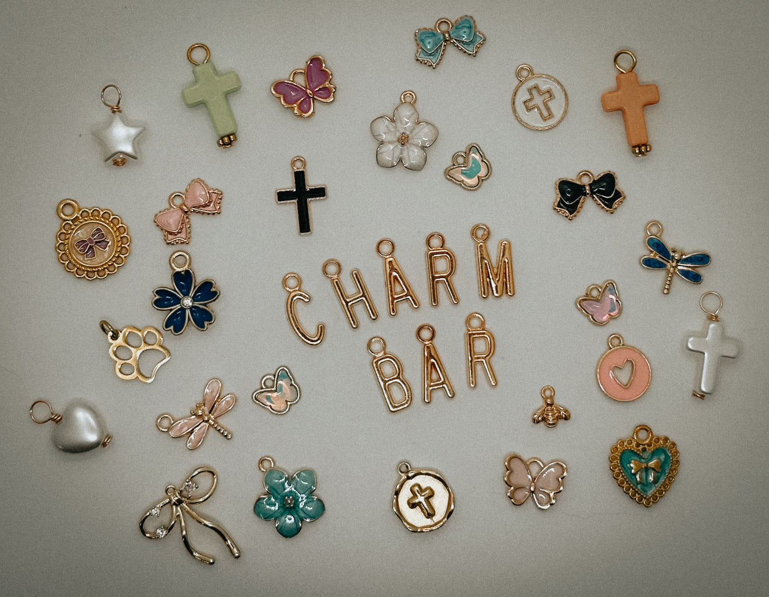 First you want to start by selecting your base. This can be a necklace, bracelet, keychain, etc. On that product page, you will be able to pick each charm you want. These charms will show up on the first picture of your base (the basic picture). From here, you can drag and drop charms to their desired location. Once ready, just hit add to cart and your design will be saved for me to create!