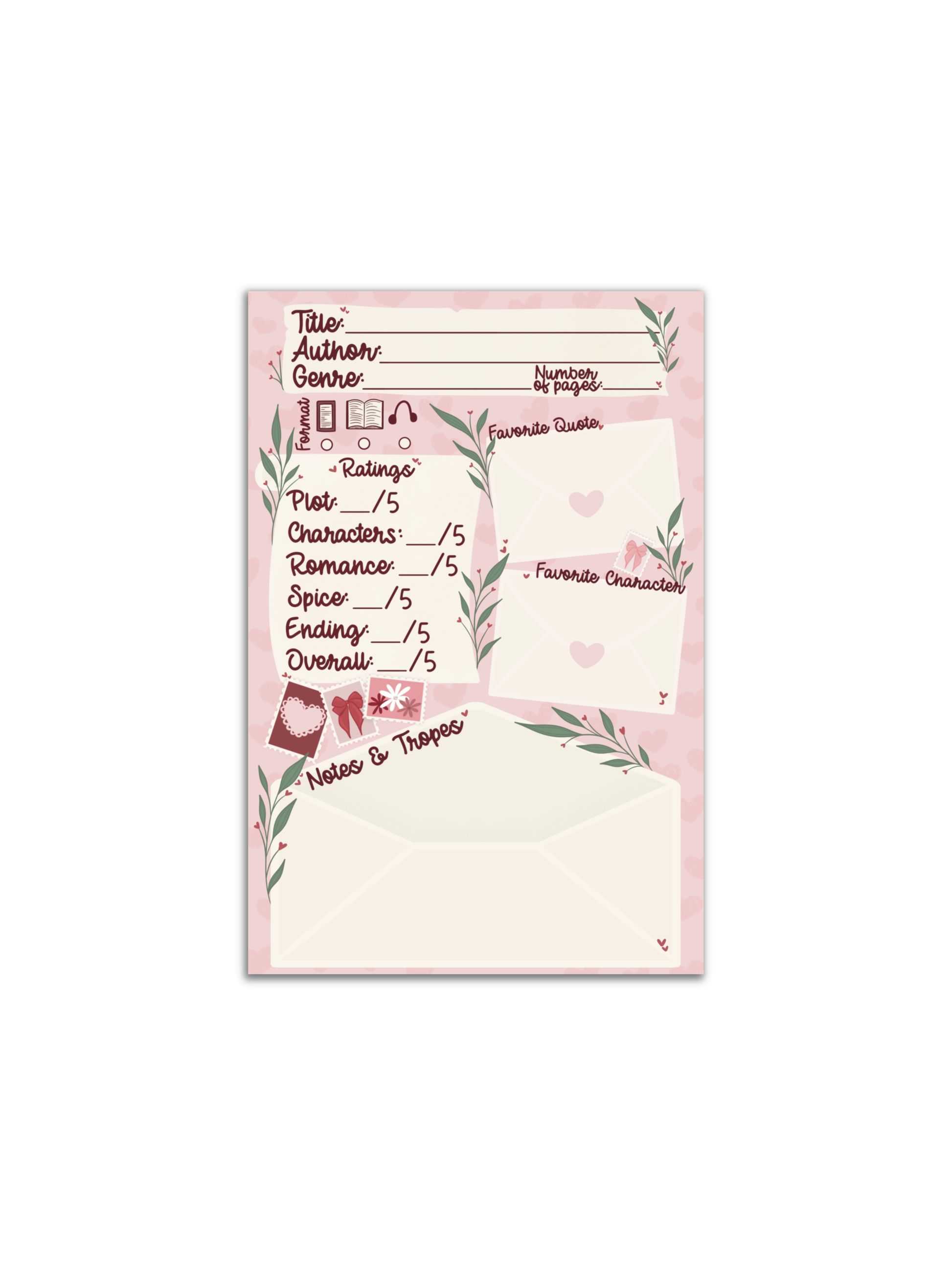 This hand-drawn 4x6 book review post-it notepad is the perfect reading journal alternative for those of us who aren't quite consistent enough to keep a reading journal but still love the option to write down our thoughts about the books we invest so much of ourselves in. Just fill a page out, rip it off, and stick it in the front of your book so you can always find it when you need it. Its also perfect for exchanging books and book reviews with friends or even slide it in a library book to give the next potential reader a review! // Details // - Authentic 3M Post-it® notes - 4"x6" - Self-adhesive - Sticky along the top 4" side - 50 Pages