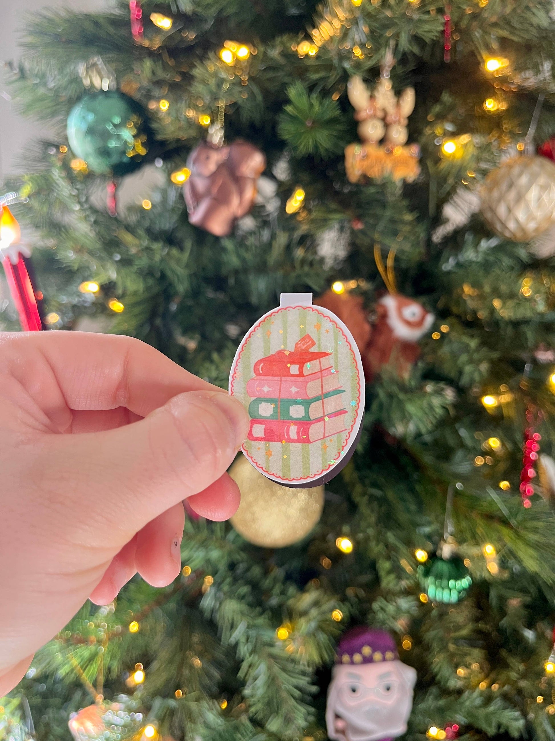 A magnetic bookmark is the cutest way to hold your page. The same design is printed on both sides. Approx 2" x 2"