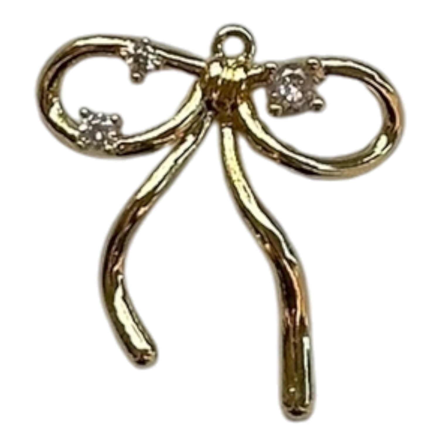 Gold plated bow charm with rhinestones.