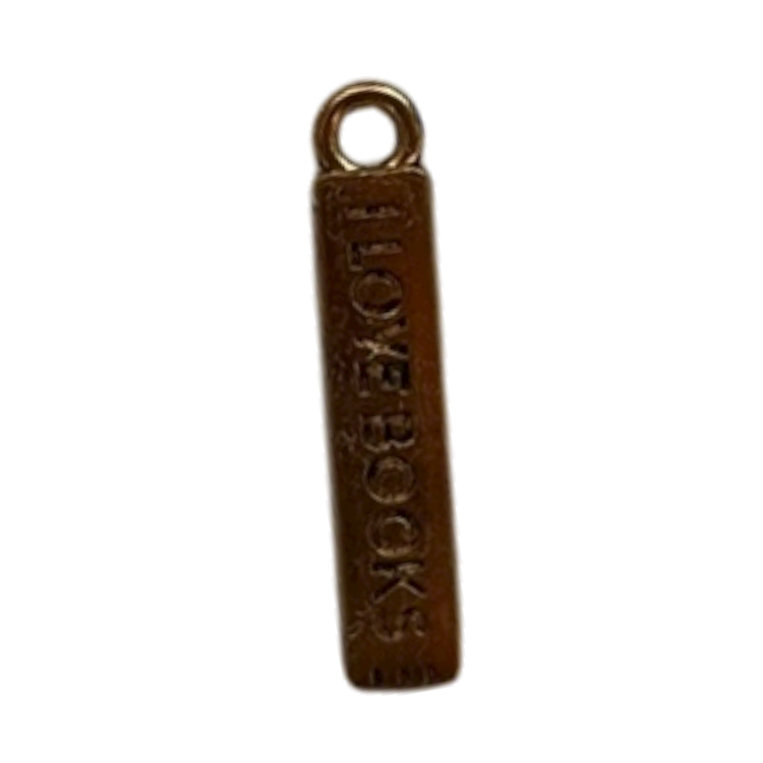Gold plated rectangle charm that says "I LOVE BOOKS."