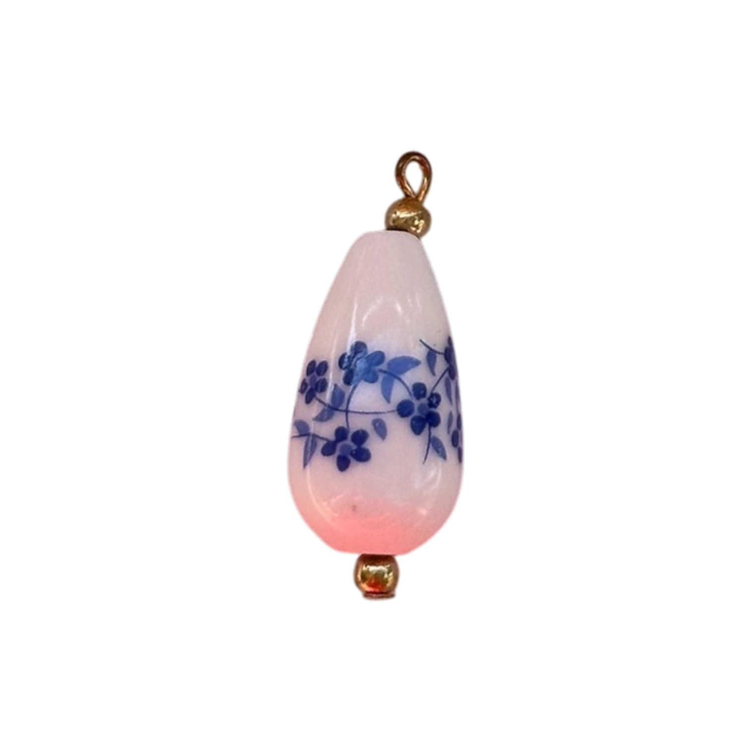 White ceramic charm with a blue floral pattern. Print pattern may differ slightly from charm to charm.
