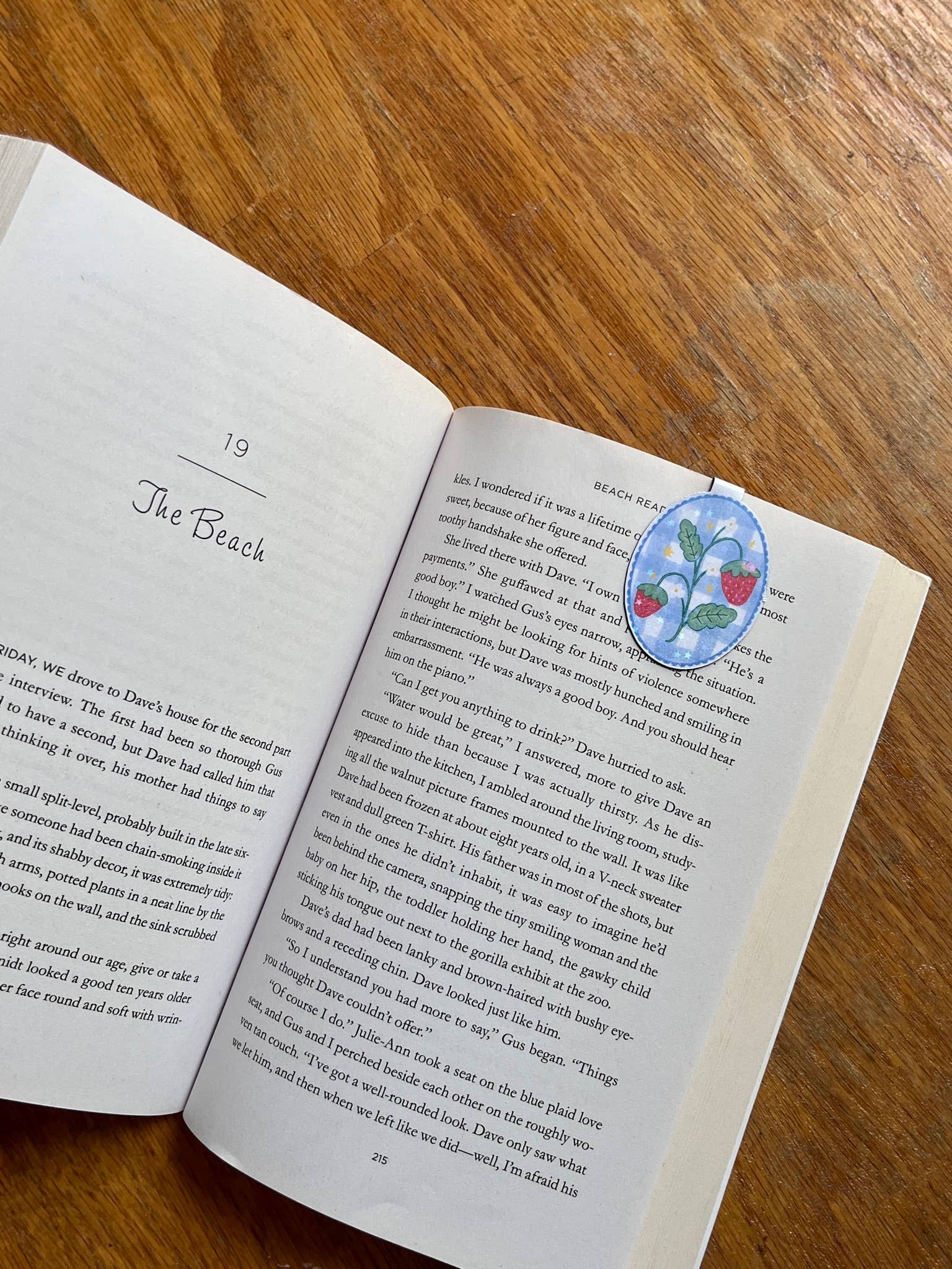 A magnetic bookmark is the cutest way to hold your page. The same design is printed on both sides. Approx 2" x 2"