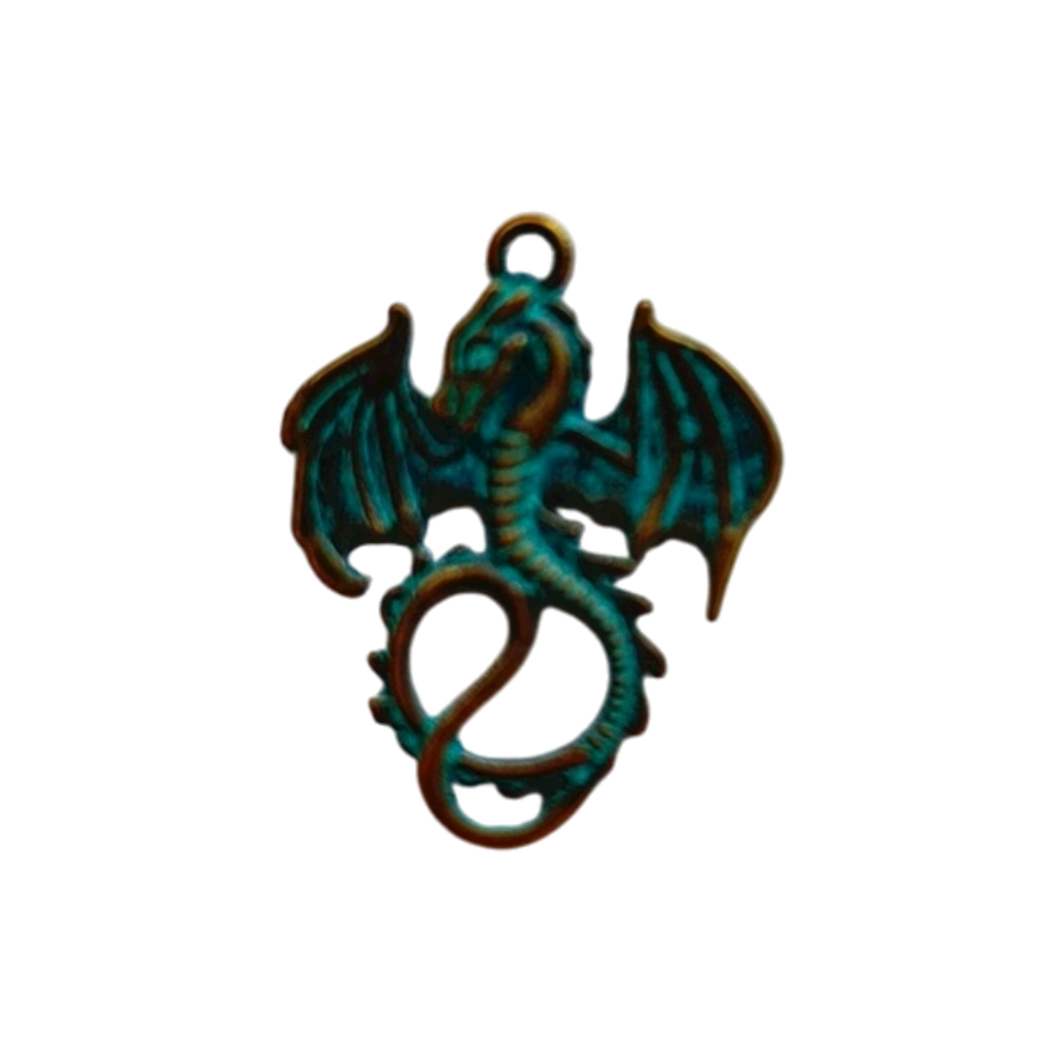 Gold/bronze and teal dragon charm.