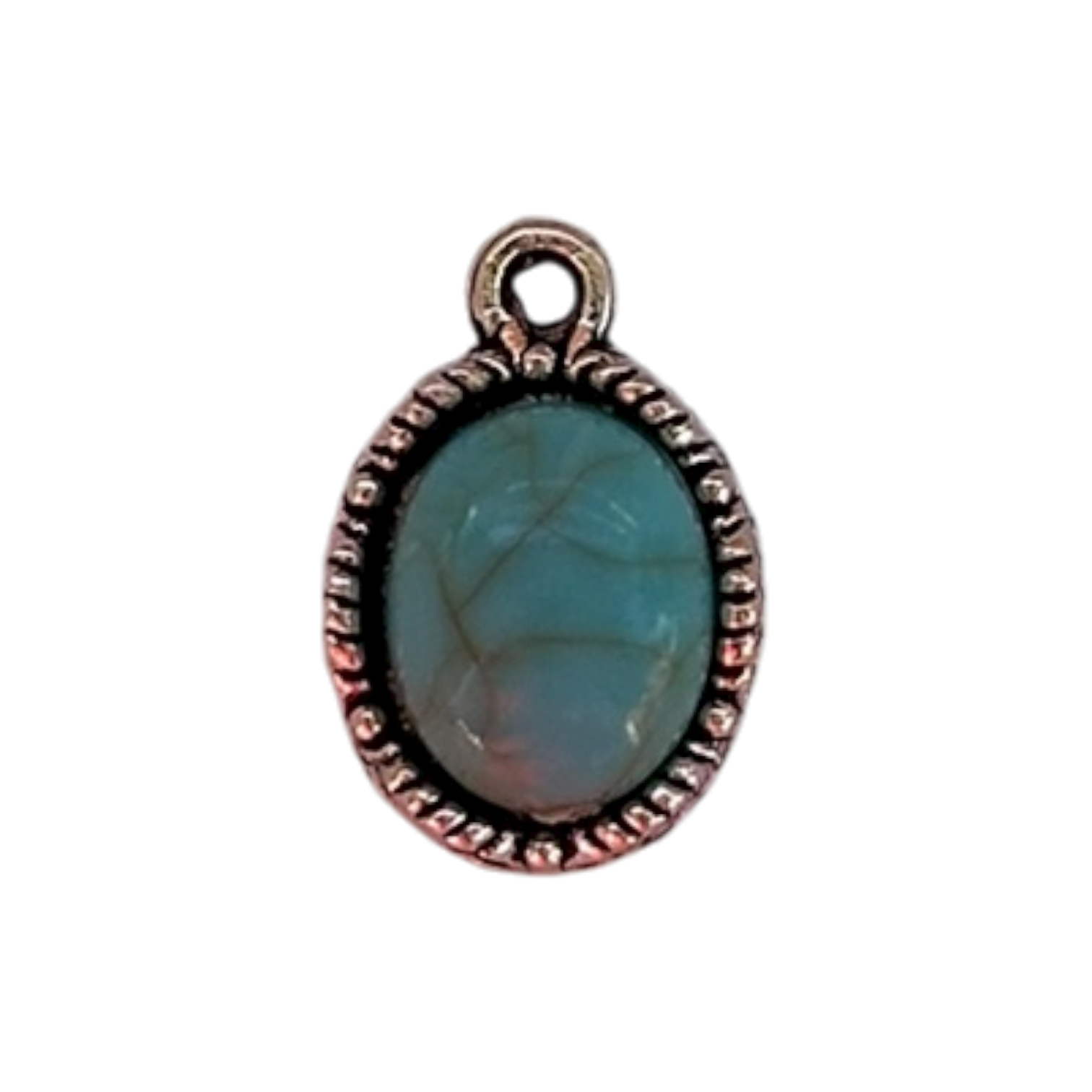 Stainless Steel charm with turquoise interior. Veining patterns will vary.