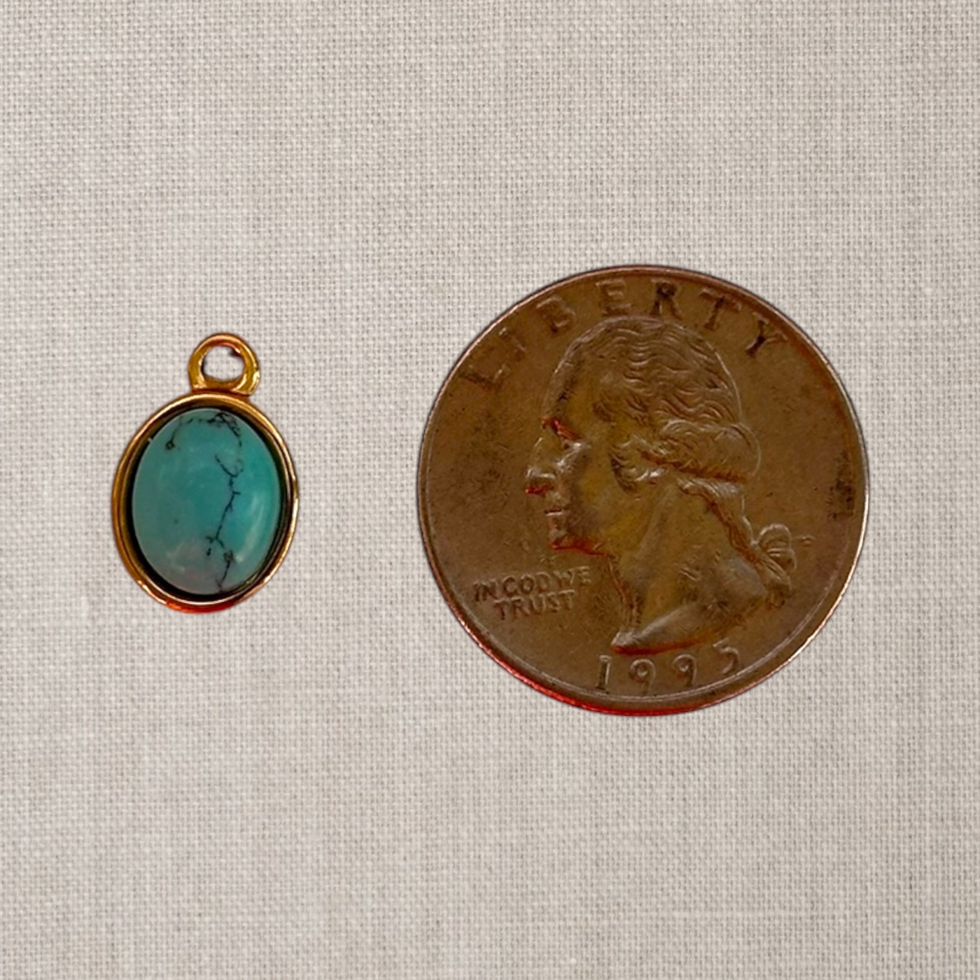 Gold plated charm with turquoise interior. Veining patterns will vary.